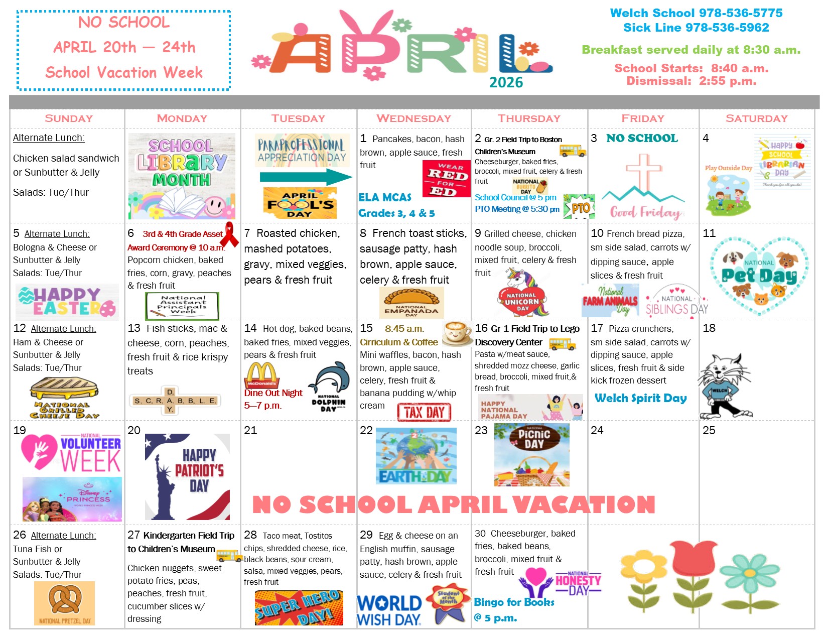 April Calendar March 26, 2026 Click “Read more” to see what’s happening this month at the Welch School… Categorized in: Welch Elementary