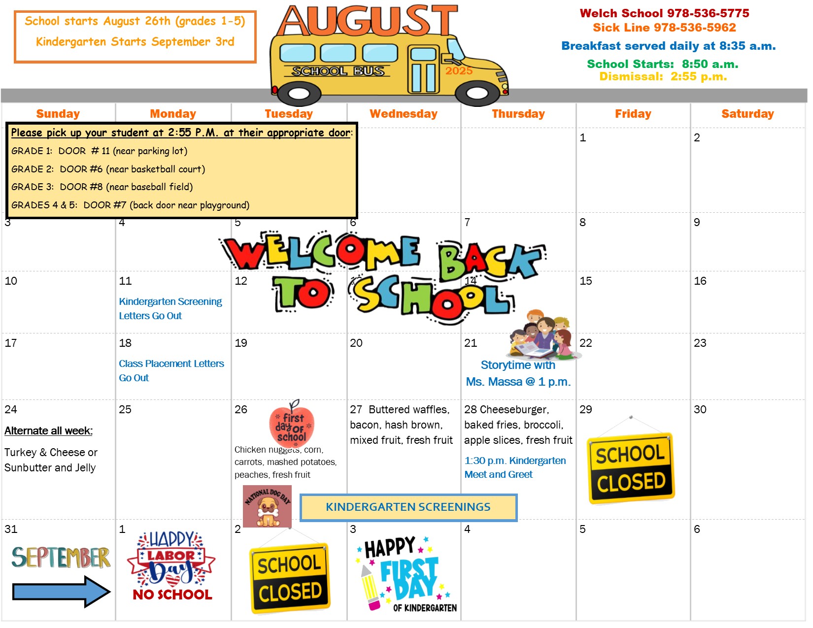 August Calendar July 31, 2025 Click “Read more” to see what’s happening this month at the Welch School… Categorized in: Welch Elementary