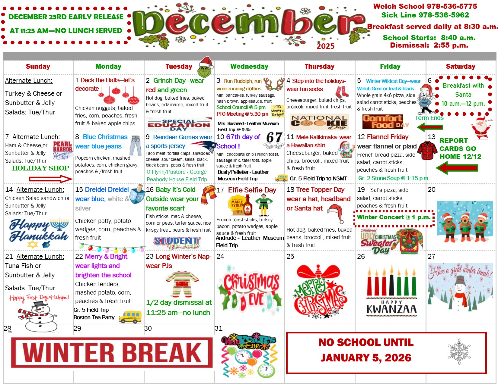 December Calendar November 21, 2025 Click “Read more” to see what’s happening this month at the Welch School… Categorized in: Welch Elementary