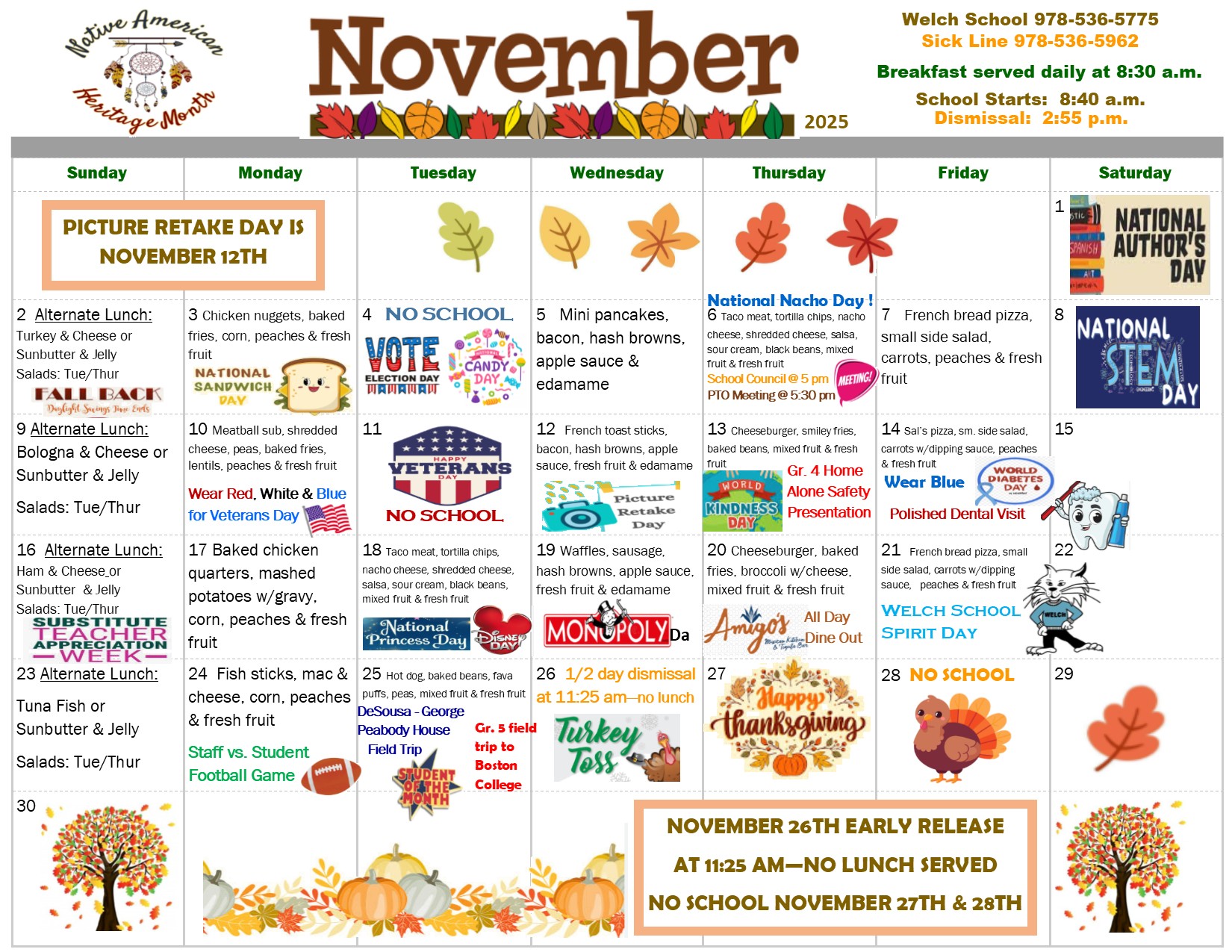 November Calendar October 27, 2025 Click “Read more” to see what’s happening this month at the Welch School… Categorized in: Welch Elementary